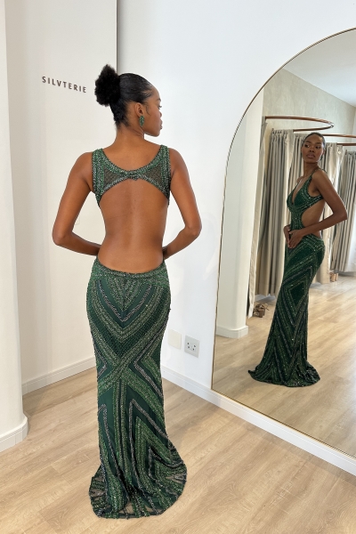 Descrição: Vestido verde esmeralda bordado