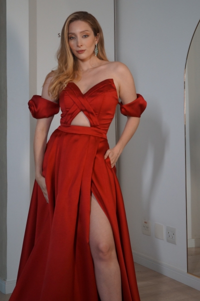 Descrição: Vestido vermelho zibeine com manga removível.